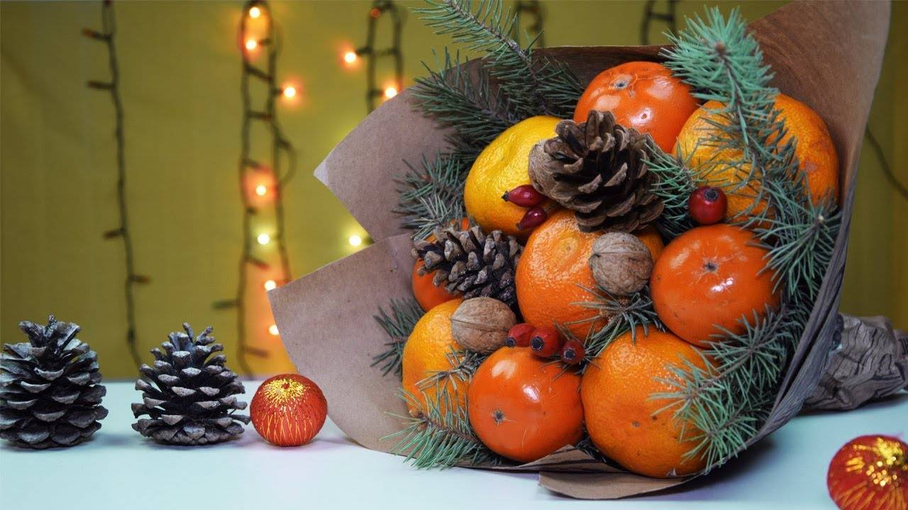 Подумайте над вазами с различным наполнением, лучше всего съедобным. Можно положить внутрь имбирное печенье, мандарины и другие угощения. При желании можно капнуть на саму вазу, лучше выбрать плетеную, немного хвойного масла.