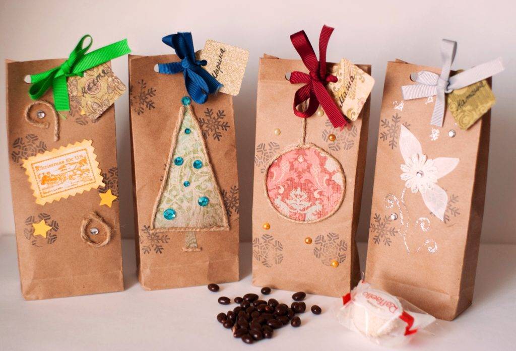 Даже обычную сумочку из крафт-бумаги реально превратить в подарочный вариант, если украсить её ленточкой кружева, цветной шерстяной ниткой с помпонами, ленточками серпантина и т.д.