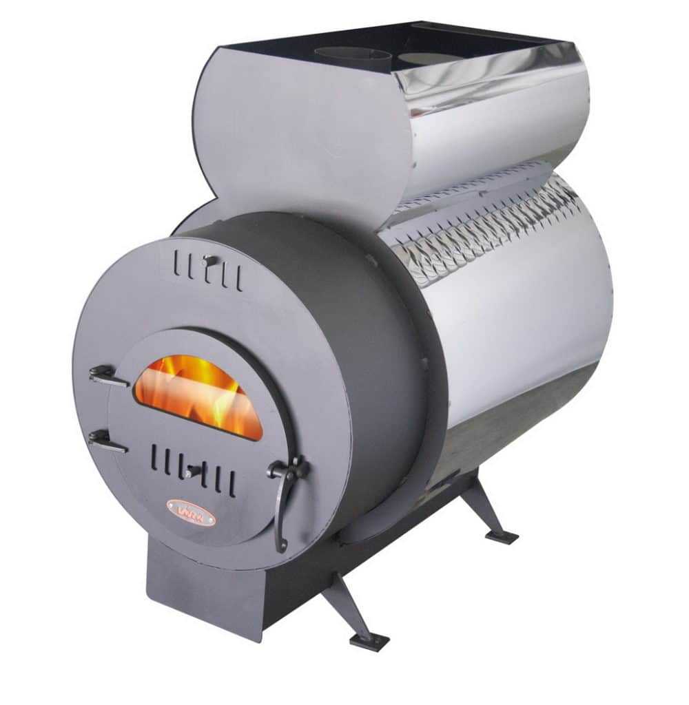 Некоторые модели отечественных промышленных печей для бани также оборудованы дополнительными парогенераторами – целой системой металлических пластин, наваренных на корпус. Они быстро разогреваются в процессе растопки печи до 65°С, и при соприкосновении с водой образуют приятный легкий пар. И это не совсем тот пар, что получается, если воду налить прямо на верхнюю площадку печи – здесь кипящая вода еще и сталкивается волнами, скатываясь с одной пластины на другую, отчего пар становится еще более горячим и легким. И особенно хорошие отзывы о парогенераторе из нержавеющей стали, который идет в комплекте с банной печью Сахара. У него получается очень легкий пар даже при уже теплых камнях.