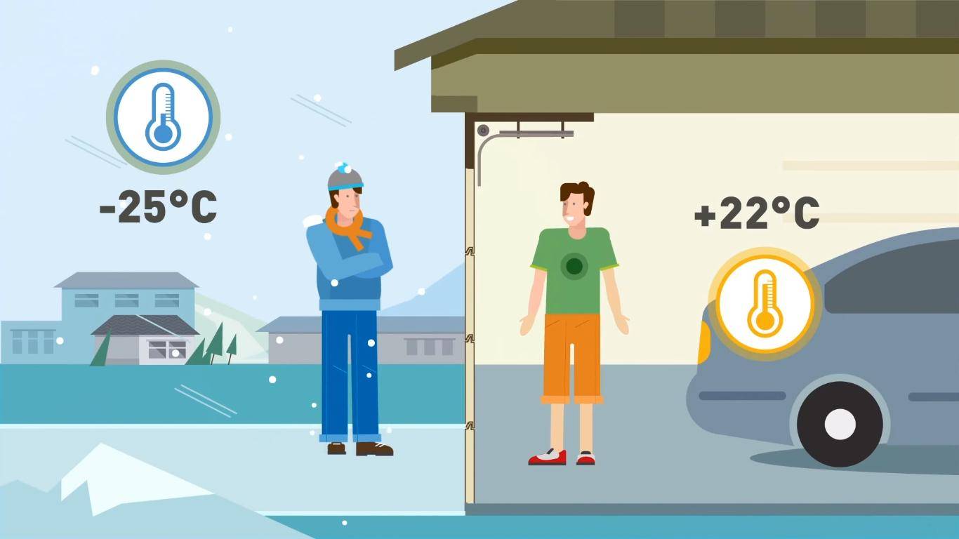 В итоге, даже когда снаружи мороз, в гараже сохраняется комфортная температура со знаком «+».