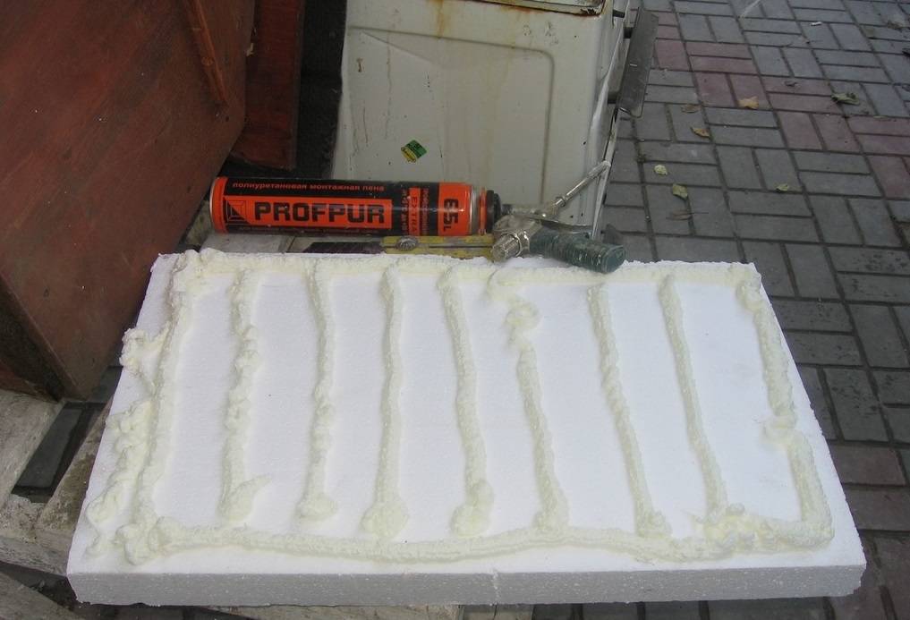 - Равномерно наносят материал на поверхность и дожидаются, пока он застынет. Затем срезают лишнюю пену, которая выступила по бокам.