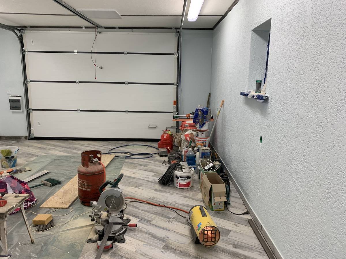 - Бетонную стяжку используют для отделки стен и пола гаража. Бетон хорошо держится на кирпичной, шлакоблочной и бетонной стене. Материал долговечный, прочный, огнестойкий, не боится механических воздействий. Продлить срок службы бетона поможет облицовочная штукатурка.