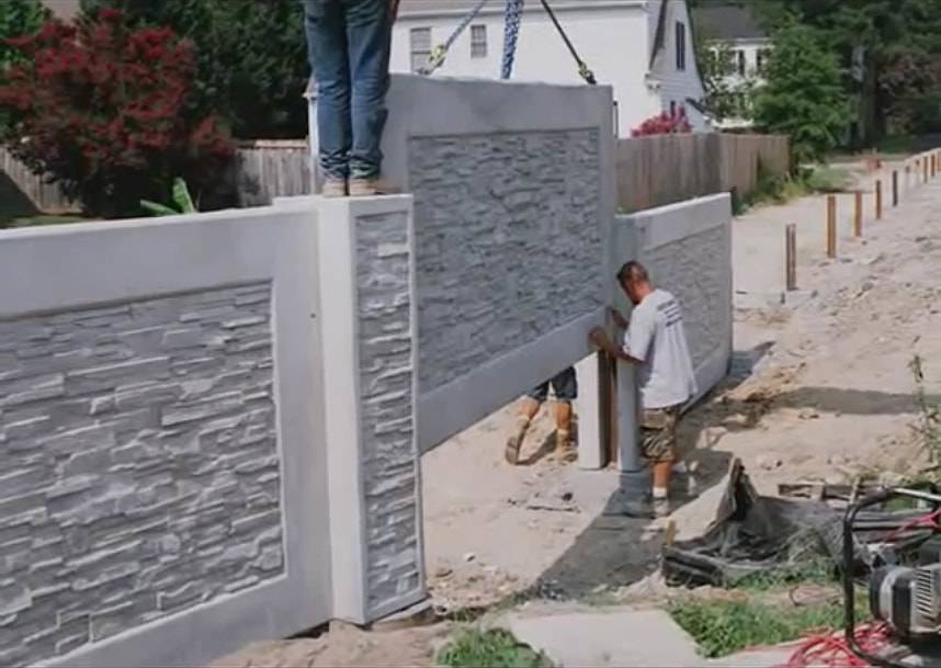 Удобство заключается в том, что можно совместить этапы производства элементов и монтажа самого забора.