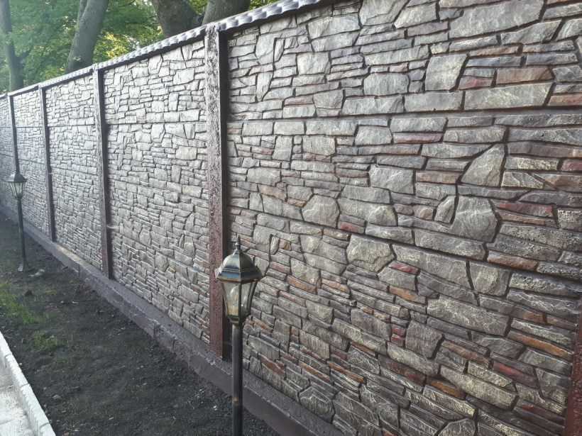 Последним этапом является отделка уже установленного монолитного ограждения – это может быть декорирование под какой-либо вид материала (кирпич, камень и прочее) или что-то более не стандартное.