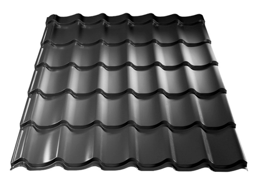 Металлочерепица классического рельефа в форме волны. Подходит для любых видов крыш. Подчеркнет стиль дома и всего участка.
