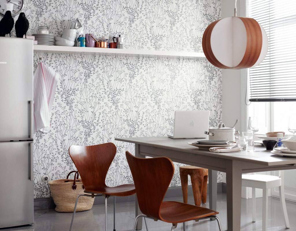 Узоры на кухонных обоях? Почему бы и нет! Особенно, если сделать упор в теплый Прованс или холодную, но от этого не менее уютную Скандинавию.