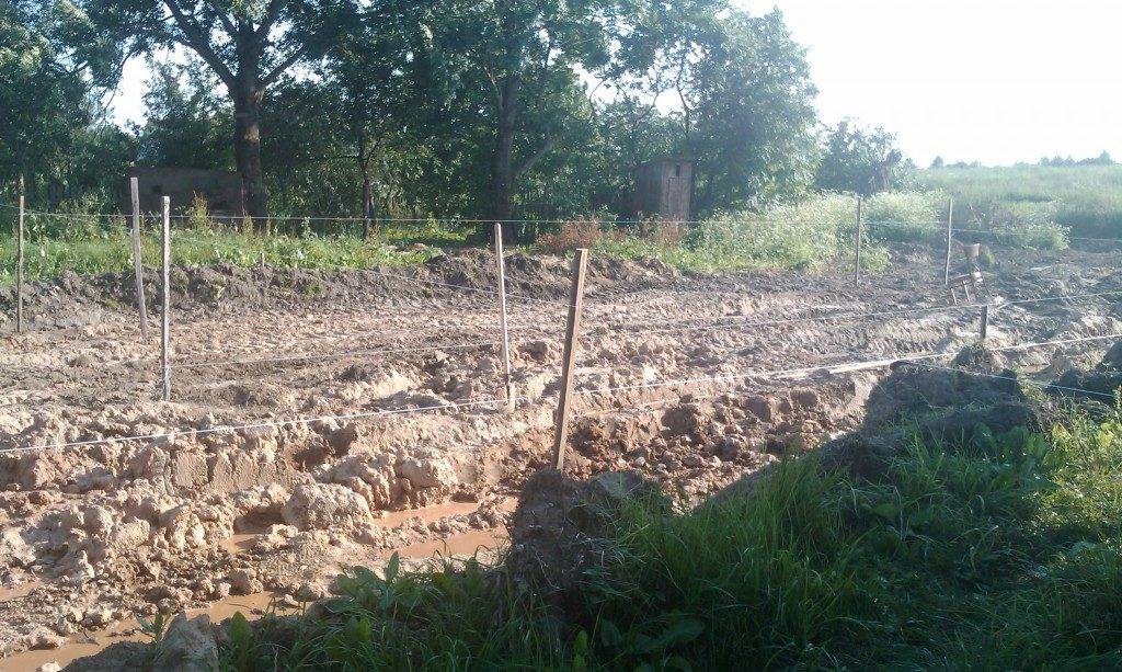 - После разметки можно приступать к рытью канавы, предварительно определив ее глубину. При этом землю рекомендуется снимать послойно штыковой лопатой, разрыхляя пласты и отбрасывая их в сторону.