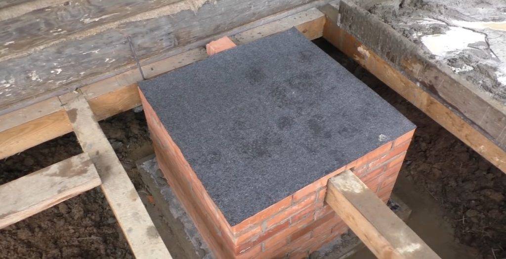 Фундамент под печь, выложенный сверху кирпичом