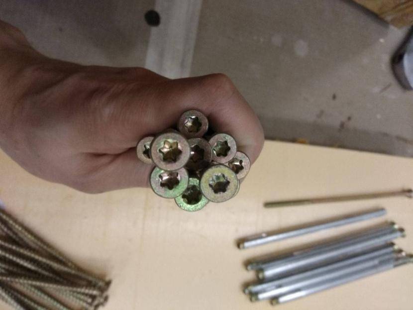 Из названия ясно, что мебельные саморезы предназначены для сборки элементов мебели. Длина у них традиционно 50 мм. Закручивать конфирматы необходимо в подготовленный канал, то есть заранее засверленное отверстие, поскольку концевая часть самореза тупая.