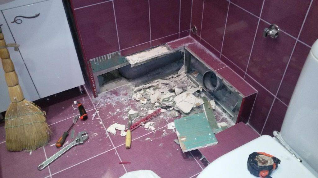 Если нет цели сохранить плитку целой, то работать можно гораздо быстрее. Посмотрим, как действовать в этом случае, особенно если какой-то элемент сантехники вмонтирован под плитку.