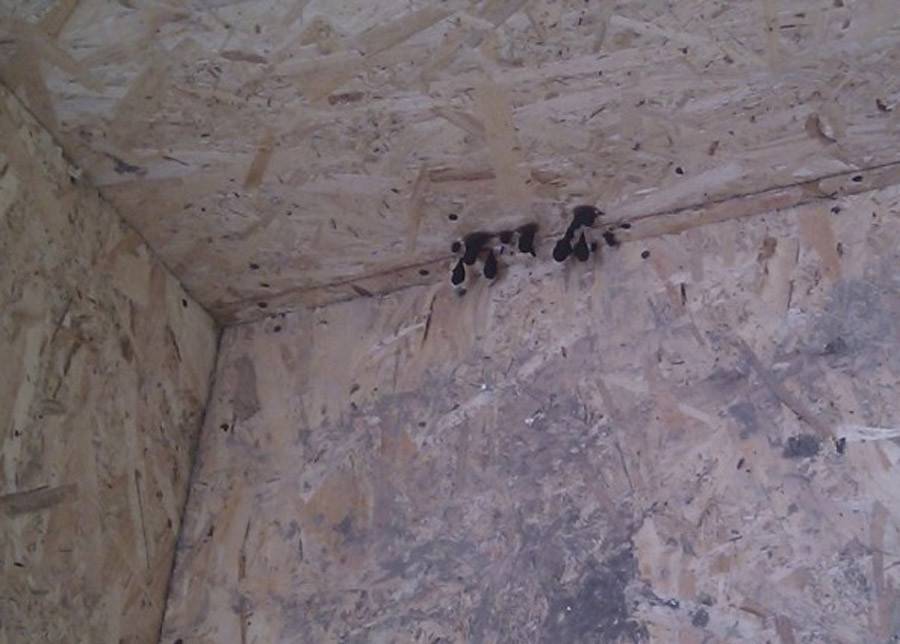 К слову, мыши пролезли к нам уже в готовый дом. А вот в пенопласте они бы жили долго, прогрызли ходы и вывести их было бы очень трудно. Забегая вперед, скажу, что наша ошибка была в том, что мы ничем не покрыли ОSB-2 панели, не стали делать внешнюю обшивку. Стены с улицы желательно хотя бы покрасить. Это привело к тому, что от дождя один из листов разбух и отошел. Вот в эту щель и ринулись полевки.