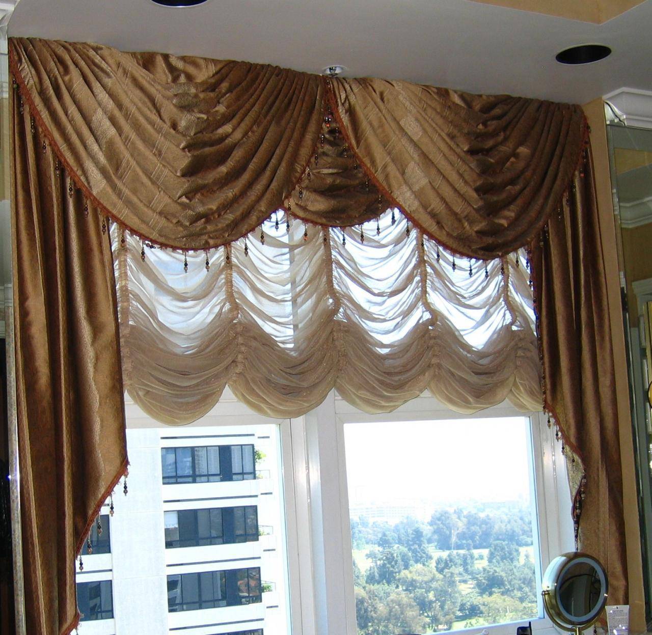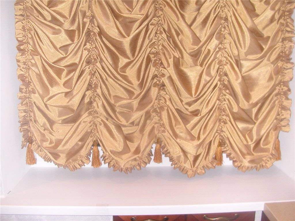 Для создания столь необычного вида французских штор потребуется ткани больше, чем того требуют обычные «полотняные». Виной тому массивные фестоны.