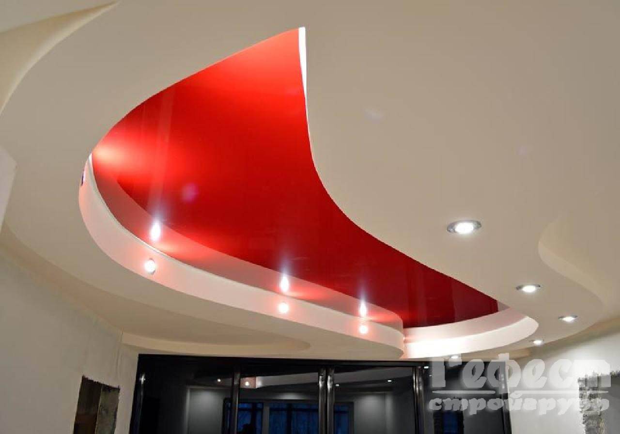 - Для воплощения сложных творческих идей стоит задумываться о сочетании с гипсокартоном. Сами по себе матовые и глянцевые полотна смотрятся проще.