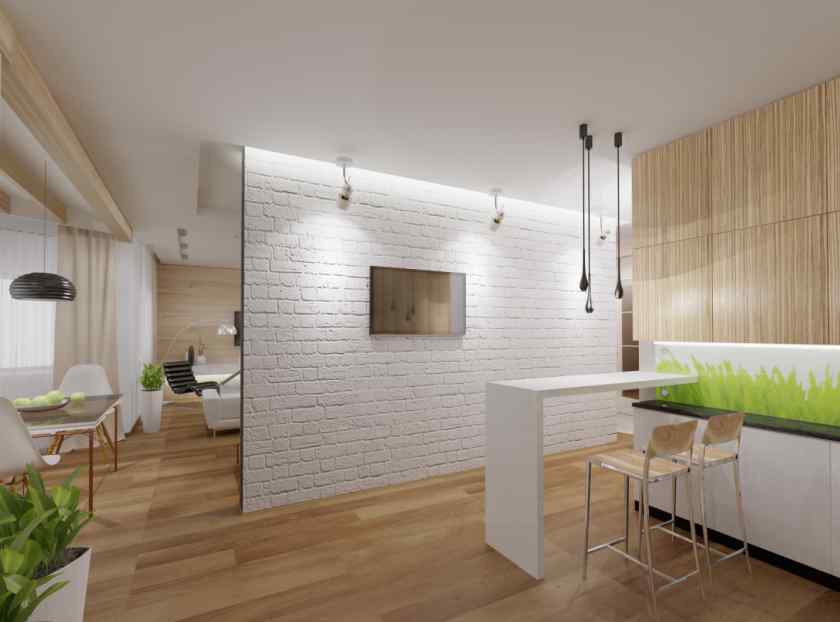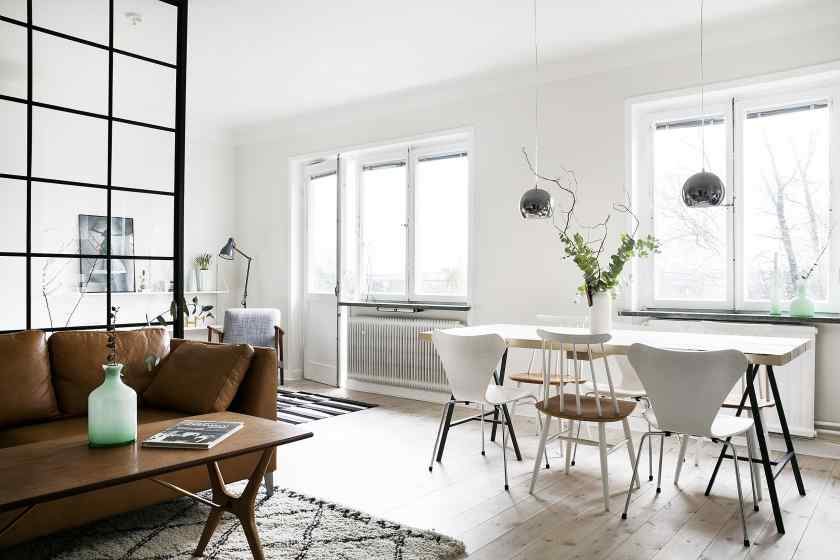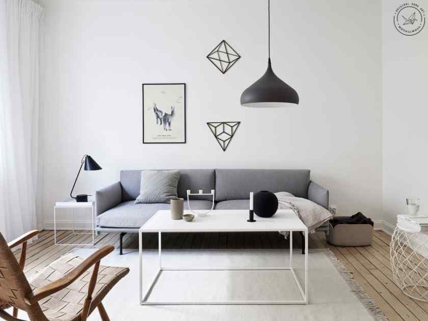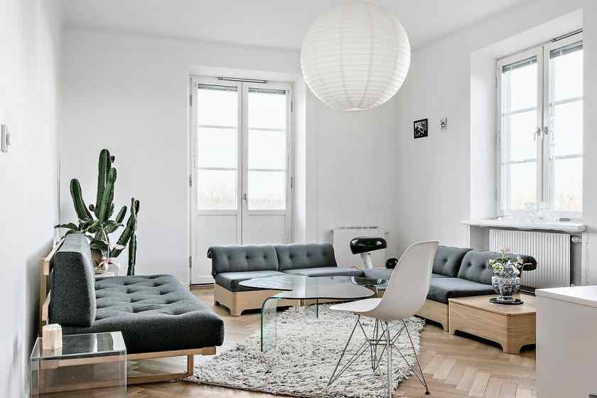 Скандинавский стиль в интерьере переплетается с минималистическим образом. Этот подвид минимализма отличается стремлением создать светлую атмосферу уюта. В интерьере допустимо использовать шерстяные пледы, подушки, тканевую обивку на мебели, плавные линии. Фурнитура изготавливается из натурального дерева. Можно расставить несколько растений.