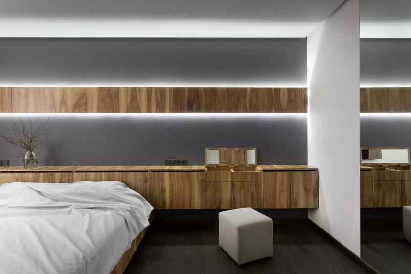 Внутреннее освещение — источники света монтируют в нишах, внутри шкафов, гардеробных. Внутренний свет может быть функциональным и декоративным. В первом случае он требуется для удобства: когда есть свет внутри вместительного шкафа, легче найти нужную вещь