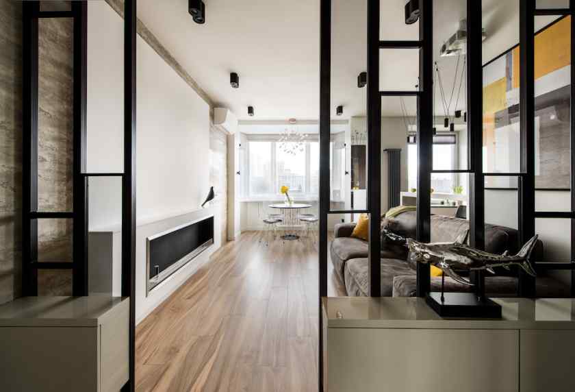 Если вы не можете или не хотите заниматься перепланировкой квартиры, то этот трюк поможет сделать пространство светлее. Избавьтесь от дверей, которые являются препятствием для проникновения солнечного света в квартиру. Менее радикальный способ – замените двери на те, у которых есть стеклянные вставки. Где возможно, установите стеклянные сдвижные перегородки.