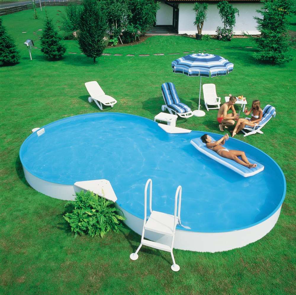 Настоящее немецкое качество. Конструкции из стального листа круглой и овальной формы или в виде восьмерки покрыты многослойной защитой от коррозии, царапин и ультрафиолетовых лучей. Хорошо переносят зиму. Овальные бассейны углубляются в грунт полностью или частично. Глубина у всех – 1,2 и 1,5 метра. У круглых моделей Baden диаметр – от 2 до 10 метров. Овальные Royal достигают в длину 11,3 и в ширину 6 метров. Максимальная длина “восьмерок” Excellent – 9,2 м, ширина – 6 метров. Цена довольно солидная. Небольшой круглый бассейн 2×1,2 обойдется примерно в 40 тыс. рублей.