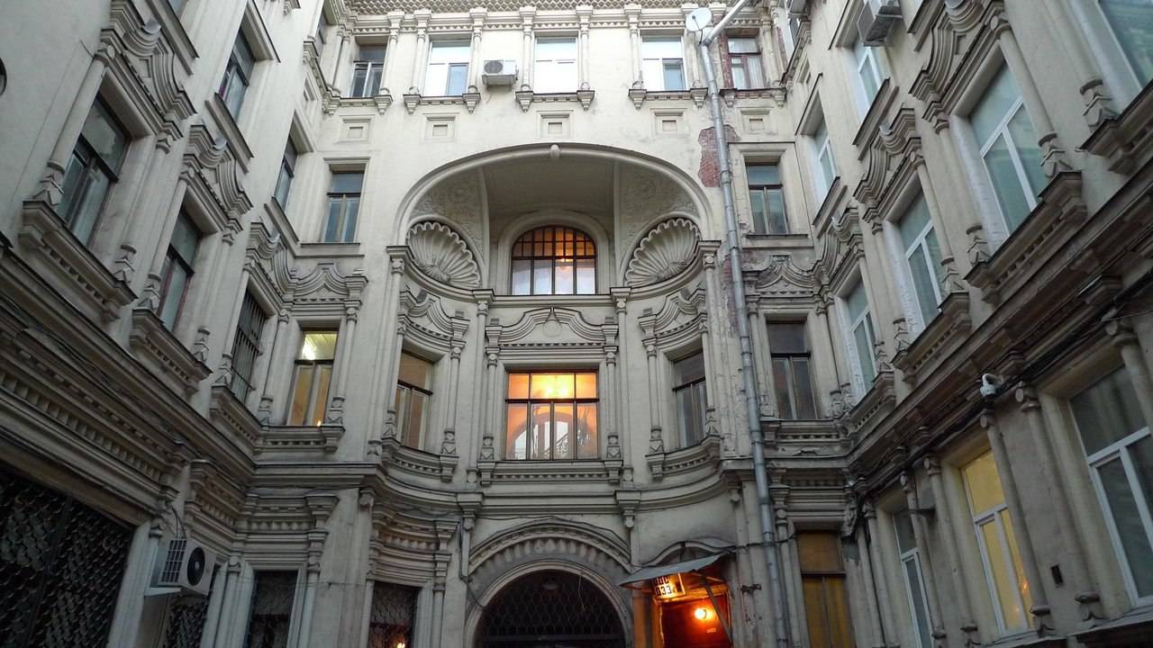 Мало кто знает, что основа у этого дома гораздо древнее, чем кажется на первый взгляд. В петровскую эпоху князь Григорий Федорович Долгоруков, построил дом с европейскими деталями на фасадах, в соответствии с архитектурной модой эпохи. В 1880-х годах фасад здания переделан по проекту архитектора С.Ф. Воскресенского, а само оно надстроено – с этого времени здесь находился пассаж, принадлежавший купцам Постниковым. Вторая перестройка дома относится к 1910–1913 годам: на фасаде появились мощные атланты и центральный купол. После революции место торговли заняло театральное искусство: в бывший Постниковский пассаж в 1936 году въехал знаменитый Театр В.Э. Мейерхольда. С 1946 года здание на Тверской занимает Московский драматический театр имени М.Н. Ермоловой.
