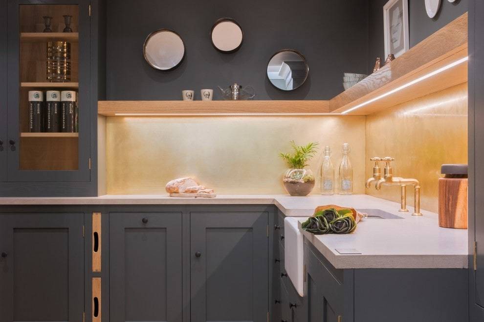 Именно поэтому их оформлению следует уделить особое внимание. Между шкафами гарнитура можно прикрепить к стене панель, которая будет сочетаться с обоями или штукатуркой