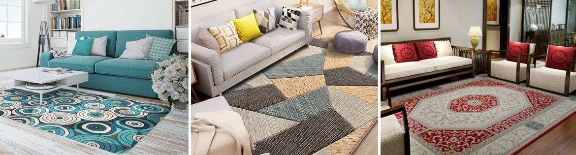Ковровое покрытие в гостиной должно гармонировать с диванной группой. Традиционно выделяют три варианта расположения: