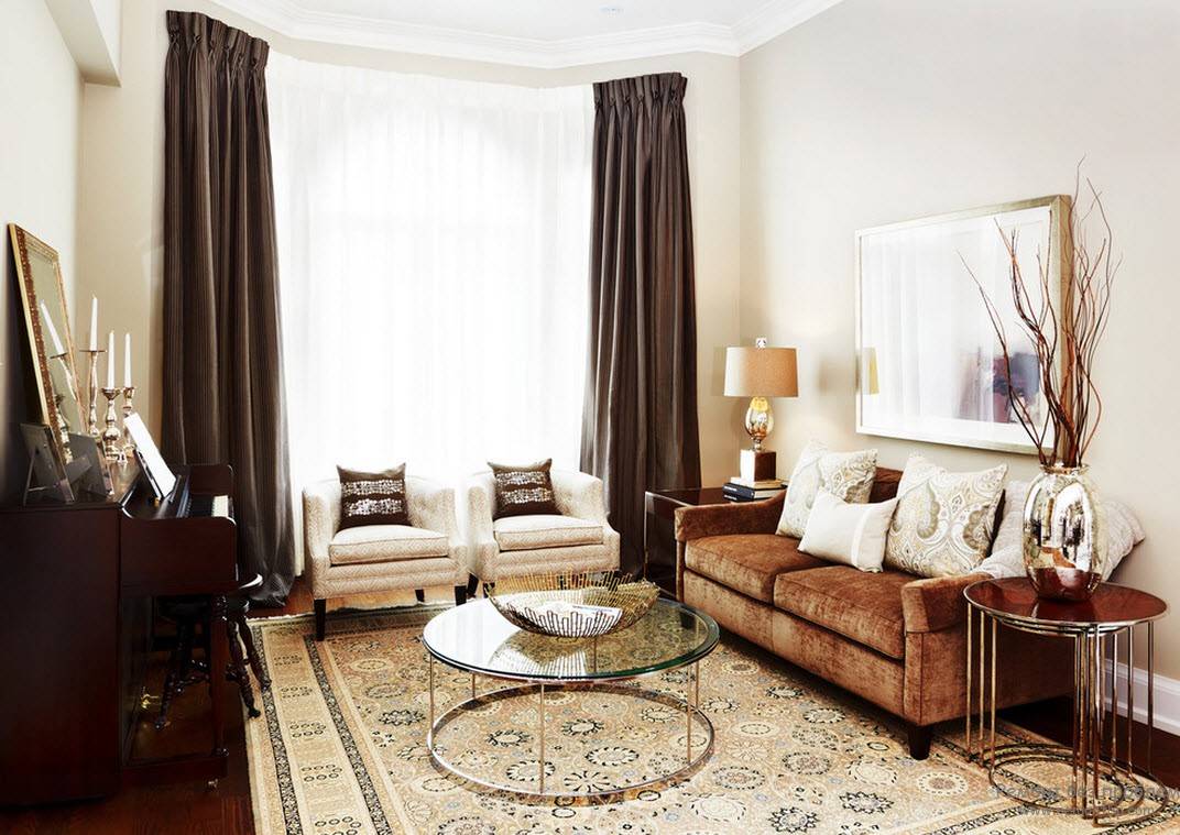 Коричневый будет уместен в любом помещении квартиры. Форму и тип конструкции выбирайте с учетом габаритов комнаты и ваших предпочтений.