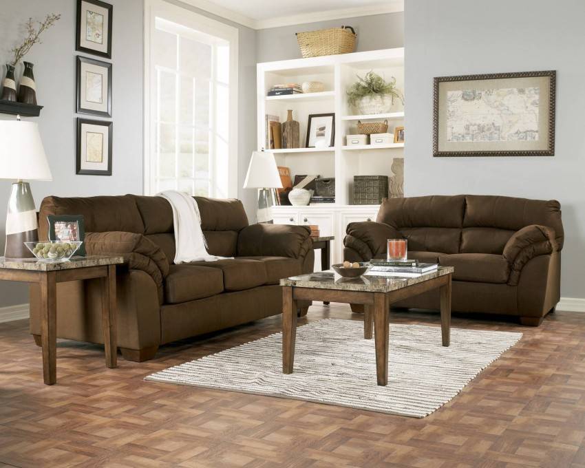 Важно учитывать цвет вашей мягкой мебели. Рядом с серой обивкой хорошо будет смотреться светлое или темное покрытие, в контраст