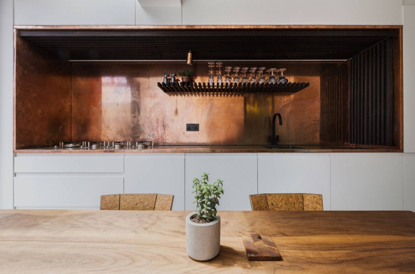 В группу надежных материалов смело можно добавлять и камень. Натуральный — весь, это практически вечная обшивка, которая выдержит кулинарные экзерсисы даже самых активных хозяек. Искусственный — только на бетонной основе. И желательно сразу покрыть его лаком, чтобы заметно облегчить очистку.