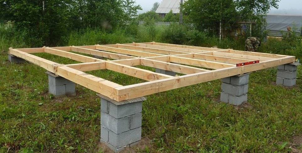 А вот как выглядит строительство небольшой каркасной бани на таком фундаменте: