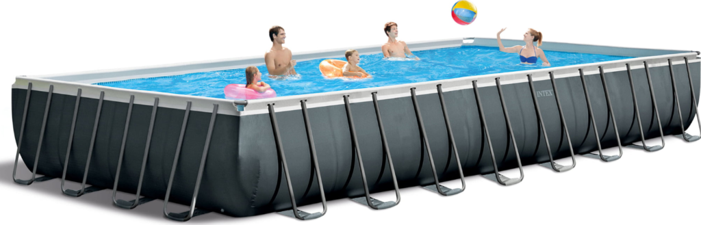 Самый большой каркасный бассейн высокого качества. Он выполнен из овальных труб, что делает его прочным и надежным. Прямоугольная форма подходит для дач и загородных домов. В комплекте идет песчаный насос с фильтром, тент и безопасная лестница. Чаша состоит из двух слоев толстого и прочного ПВХ. Для установки требуется два человека, которые смогут установить бассейн в течении нескольких часов. Производится в нескольких расцветках.