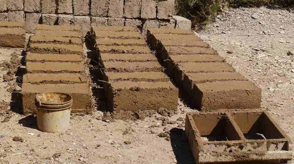 После готовую массу раскладывают по деревянным формал, и после подсыхания, примерно через сутки, блоки достают и раскладывают на солнце, так блоки сушаться пару недель. После уже из полностью просушенных блоков ложат стены дома.