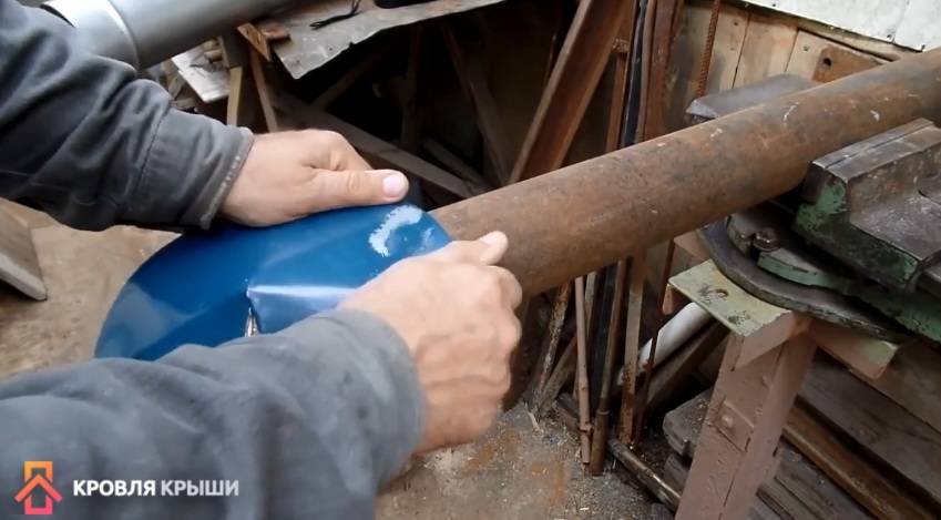 - придать получившемуся прямоугольнику из листового металла полукруглую форму, проще всего воспользоваться для этого трубой подходящего диаметра;