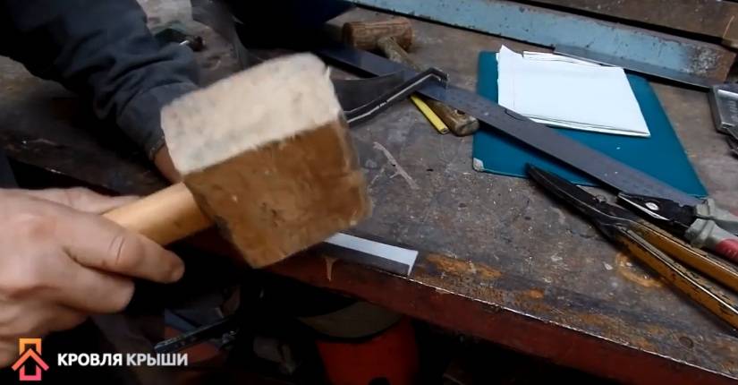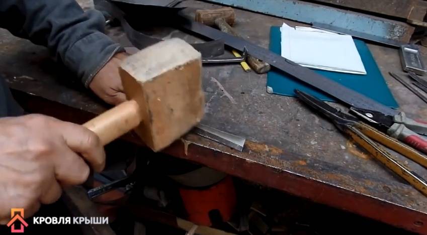 Шаг 3. Сделайте с двух сторон заготовки специальные подгибы для фиксации конуса. Это следует делать в тех случаях, когда для крепления конуса не будут использоваться заклепки. Подгибы нужно делать молотком.