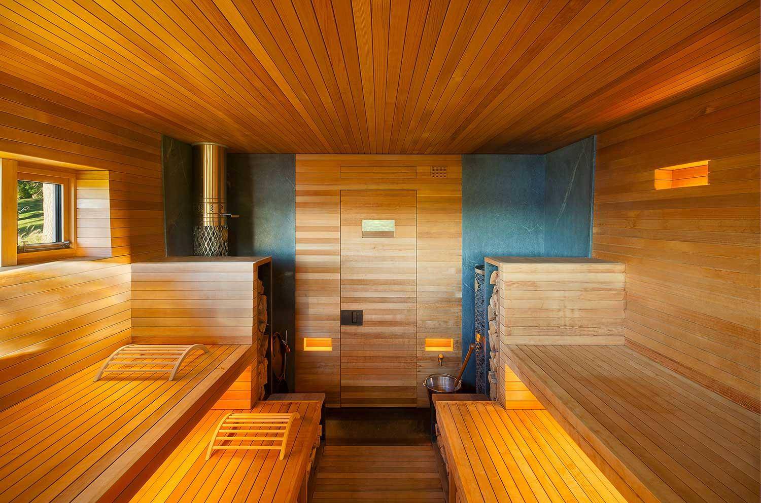 С другой стороны, внешняя сауна легко позволяет установить дровяную печь для традиционной сауны.