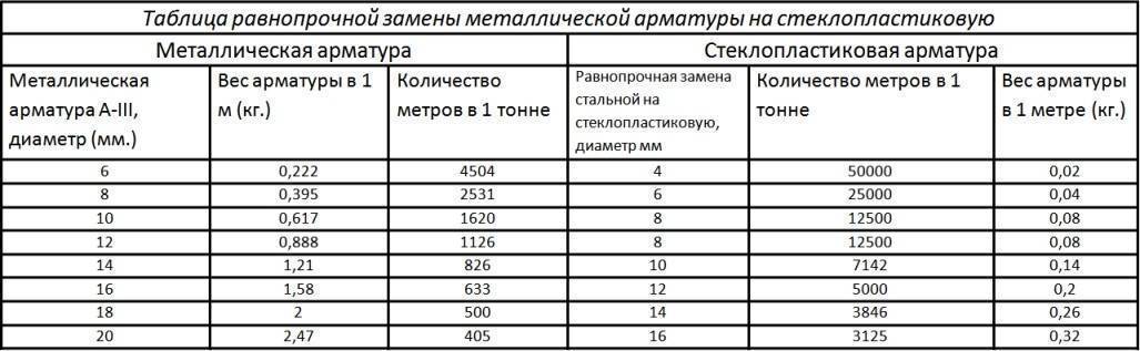 - средний удельный вес композитной арматуры — 1900 кг/м 3 ;