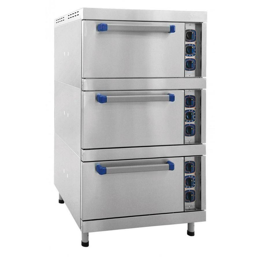 - Шкафы пекарские на 2 и 3 уровня. Рабочий температурный режим — от 65 до 270 оС. Характеризуются большим размером рабочей камеры, что позволяет выпекать крупную продукцию.