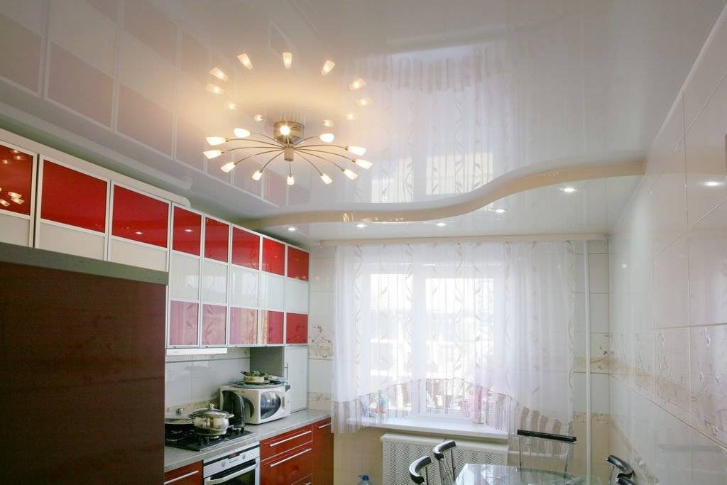 Кухонный ремонт начинается с отделки потолка. Здесь можно использовать следующие идеи: