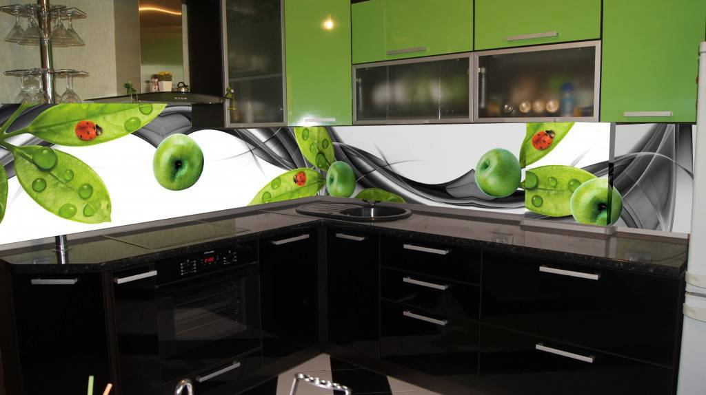 Они создадут яркие акценты в отделке. Оригинальные и стильные наклейки сегодня можно приобрести в магазине или вырезать из самоклеющейся пленки своими руками. Ими можно оформить пространство над обеденным столом, фартук над разделочной поверхностью и мойкой.