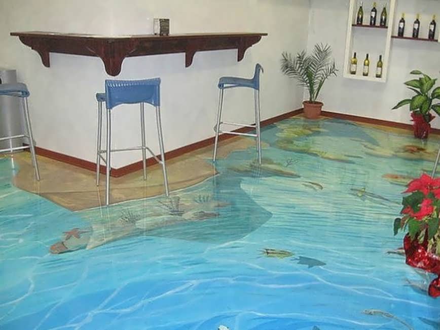 Подбирая наливной 3Д пол, следует учитывать интерьер помещения и цвет его оформления