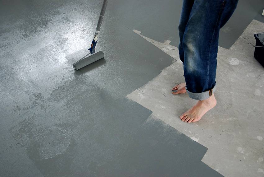 После этого необходимо обеспечить правильный уровень адгезии бетонного пола с красящими материалом. Для этого используют специальные грунтовки.