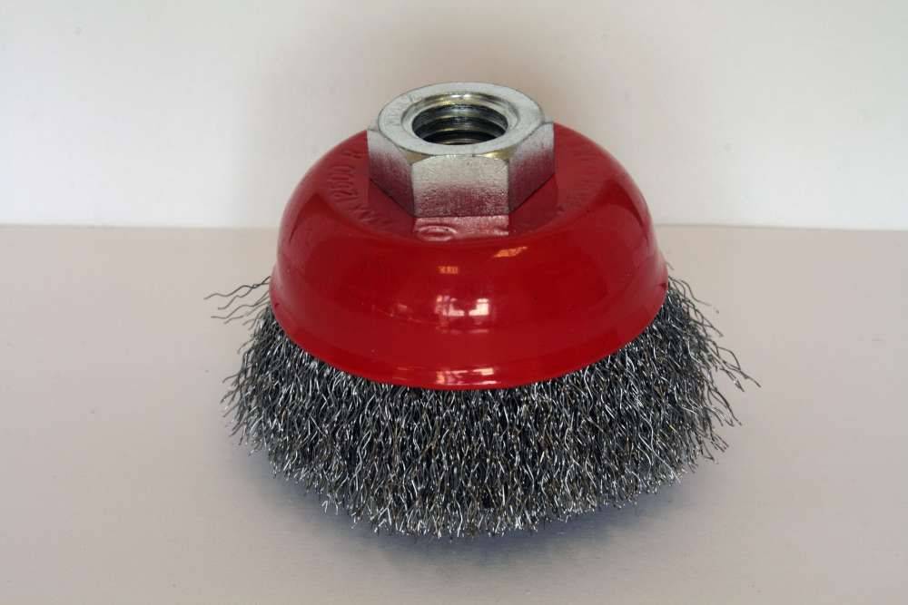 Толстый слой, которые местами прочно держится на стенах, потребует применения УШМ (болгарки) со специальной насадкой: кордщеткой для грубой обработки древесины. Она (щетка) способна снять не только старый отделочный слой, но и выровнять деревянную поверхность. Диски из наждачной бумаги в этой работе не помогут.