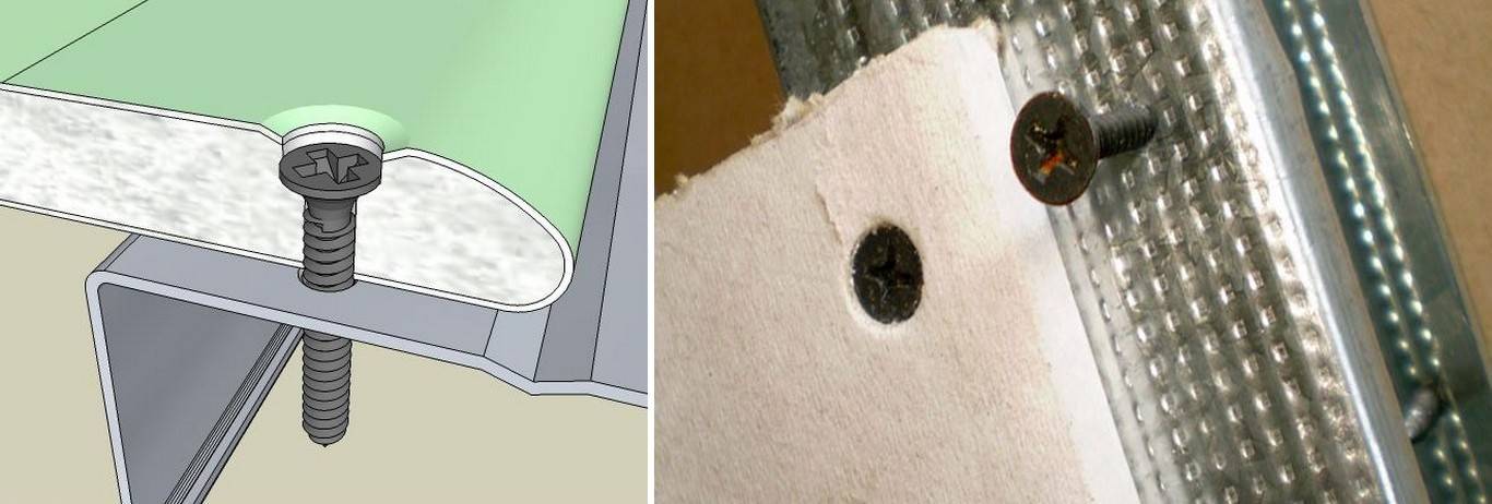 Для металлического каркаса специалисты рекомендуют применять саморезы с небольшой шляпкой, поскольку их удобнее прятать под отделкой.