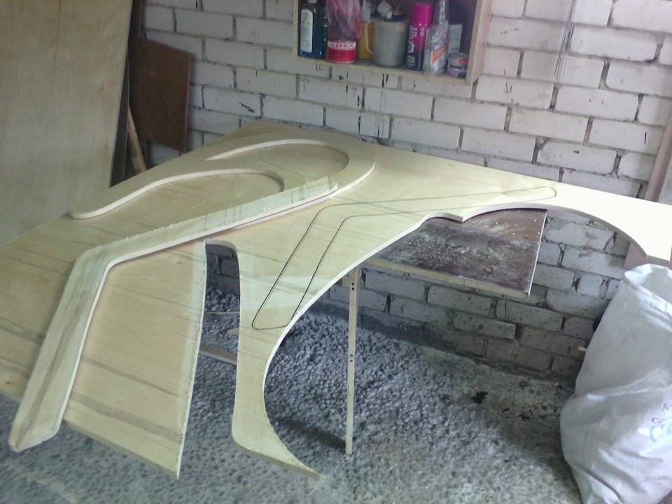 - Для изготовления полозьев используем лист фанеры толщиной 1,5 см.