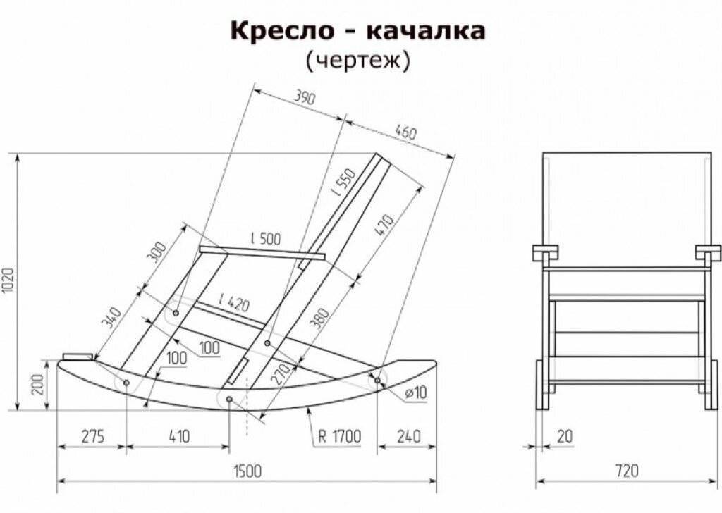 Чертеж кресла-качалки должен быть детально просчитан и учитывать параметры веса всех домочадцев. Однозначно, никто не сможет устоять против желания воспользоваться таким предметом интерьера, а значит, конструкция должна быть очень крепкой и надежной во избежание перегруза.