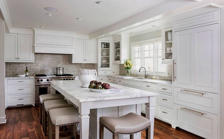 Белая кухня с белой столешницей и белым фартуком: комбинации на любой вкус