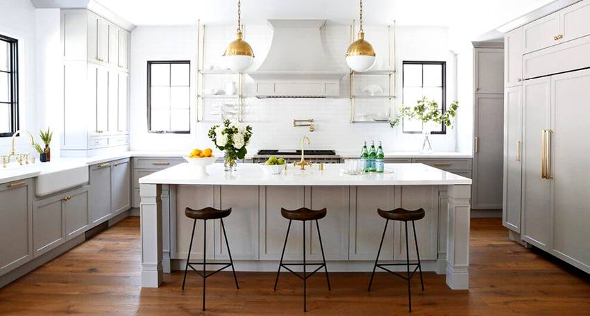 Сдержанная элегантность бело-серой кухни: фото интерьеров