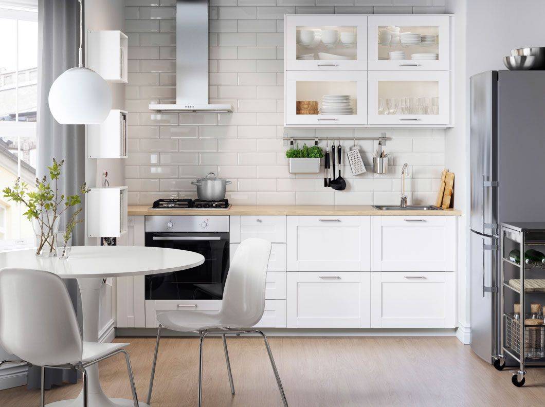 - Посредственность. При появлении на рынке мебели торговой сети ИКЕА стали более популярны варианты оформления комнаты именно в белом цвете. Так вот, из минусов белой кухни выделим то, что практически в каждой квартире есть белая (частично или полностью) кухня, из-за чего создается впечатление потери индивидуальности помещения.