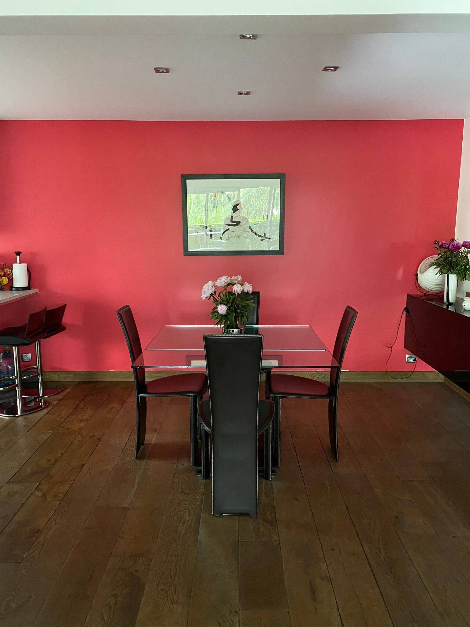 В собственном доме Инес создала ощущение очарования и игривости – все благодаря приятному светлому розовому оттенку. Инес любит розовый цвет, так как он отбрасывает привлекательное свечение на предметы вокруг. Этот приятный оттенок служит мягким фоном, объединяющим разрозненные предметы мебели – именно они создают ощущение легкой небрежности, непринужденности. Стулья были найдены в современно разных местах и выкрашены в разные цвета.