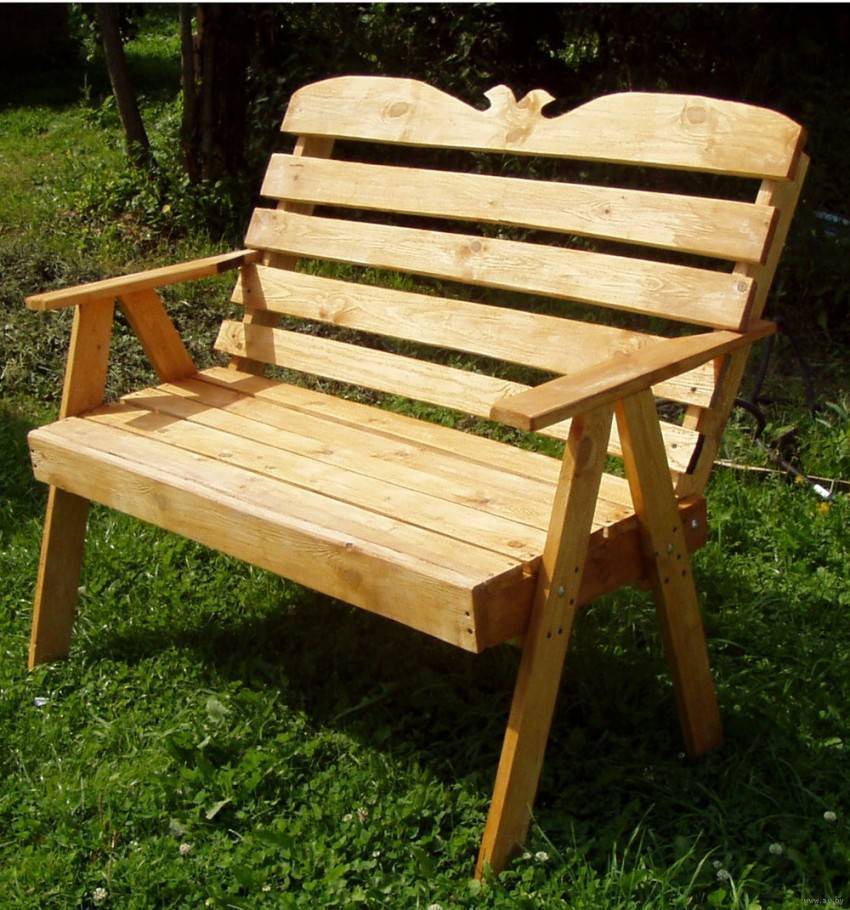 Все элементы скамьи берутся из цельной доски.Желательно.