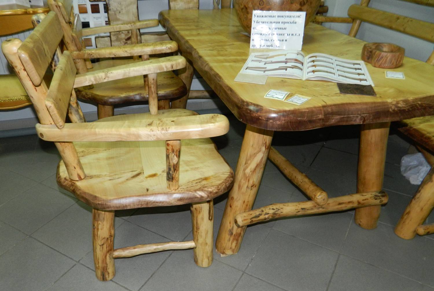 | Ясень | Белый или оливковый | Обладает высокой износостойкостью, не трескается, гибкий. Его структура позволяет создавать мебель из срубов с узором. | Не устойчив к перепадам температуры и высокой влажности |