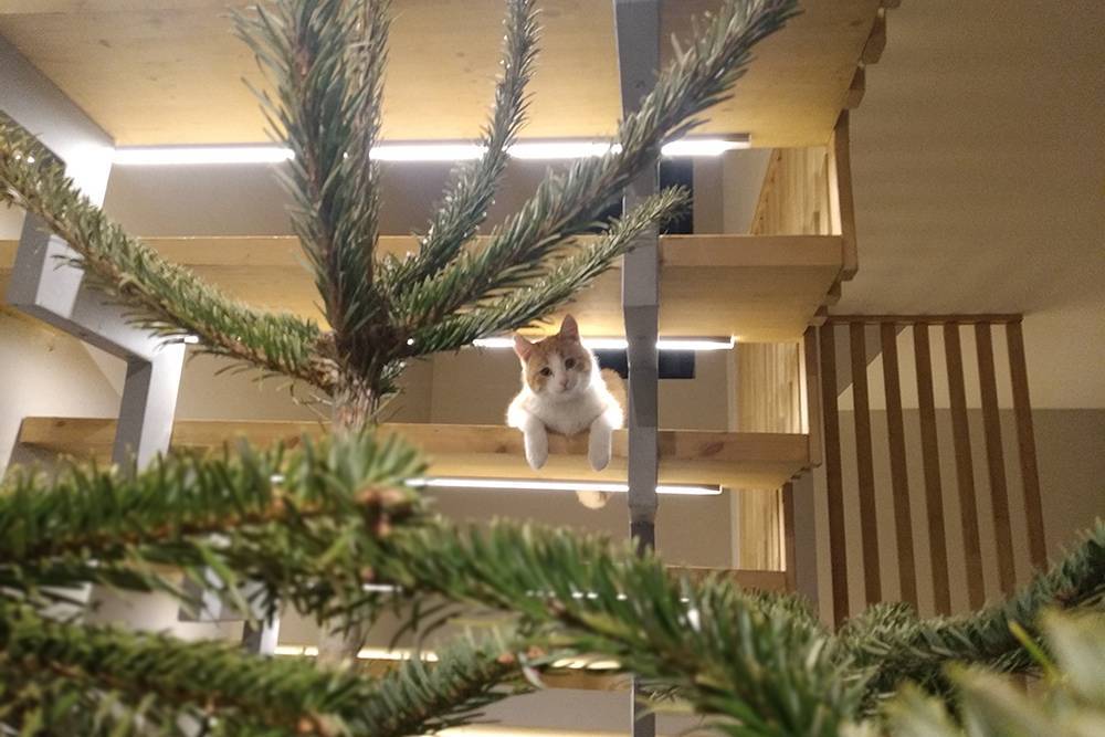 Лестницу тут же облюбовали коты. Они часто отдыхают на ступеньках и наблюдают за нашей жизнью с высоты